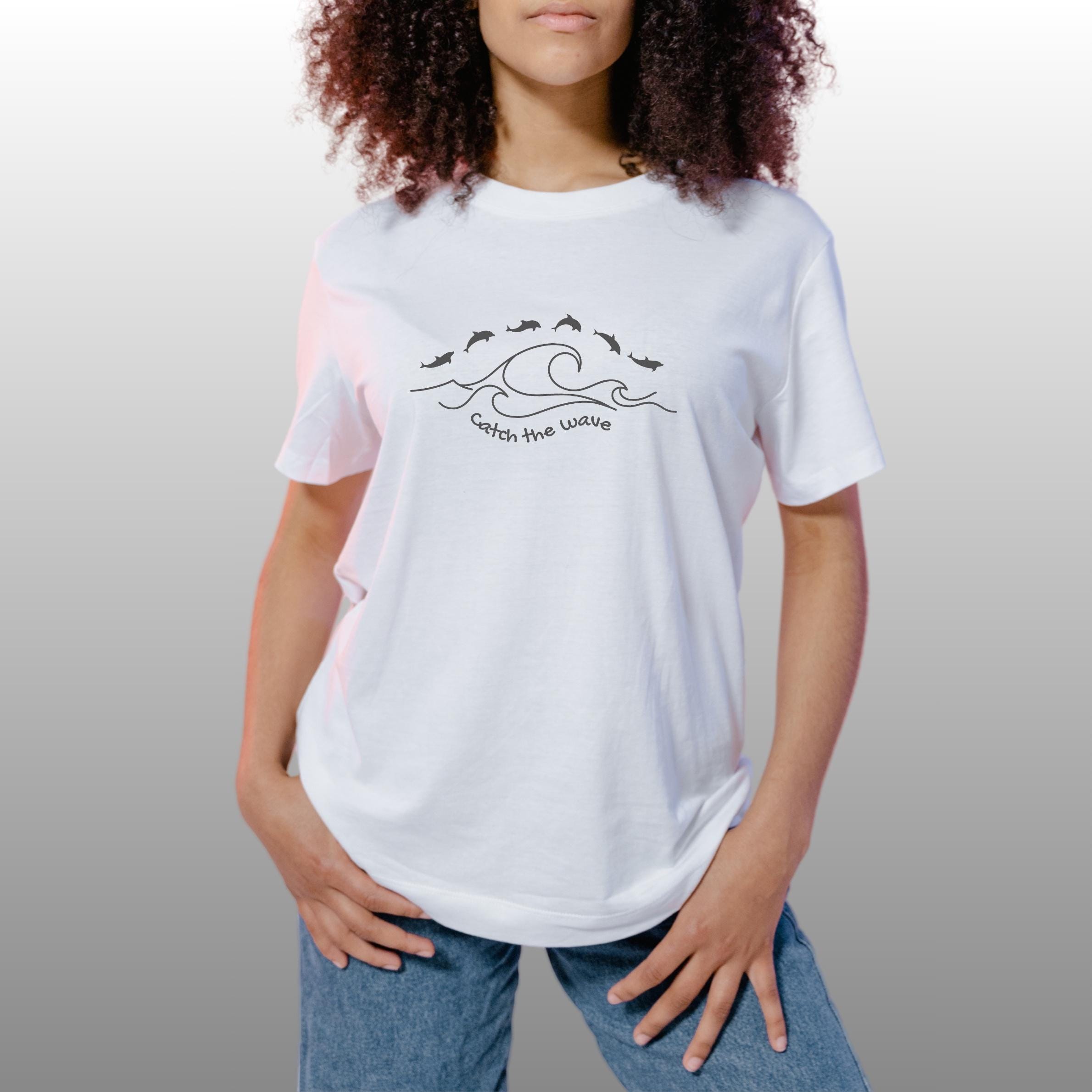 Catch The Wave Dolphins – Line Art Design Women’s T-Shirt: White S-2XL